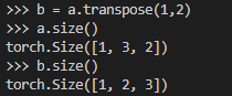 a是一个1×2×3的Tensor,1是a的第0维,2是a的第1维,3是a的第2维,permute()的作用就是重置这些维数。比如上述例子中就把第0维还是放在第0维,把原来的第2维放到现在的第一维,把原来的第一维放到现在的第二维,也就是我们希望b的维数是1×3×2。