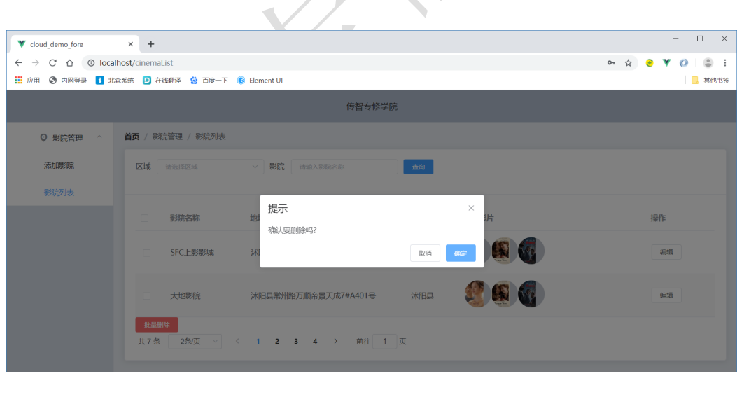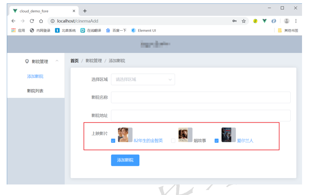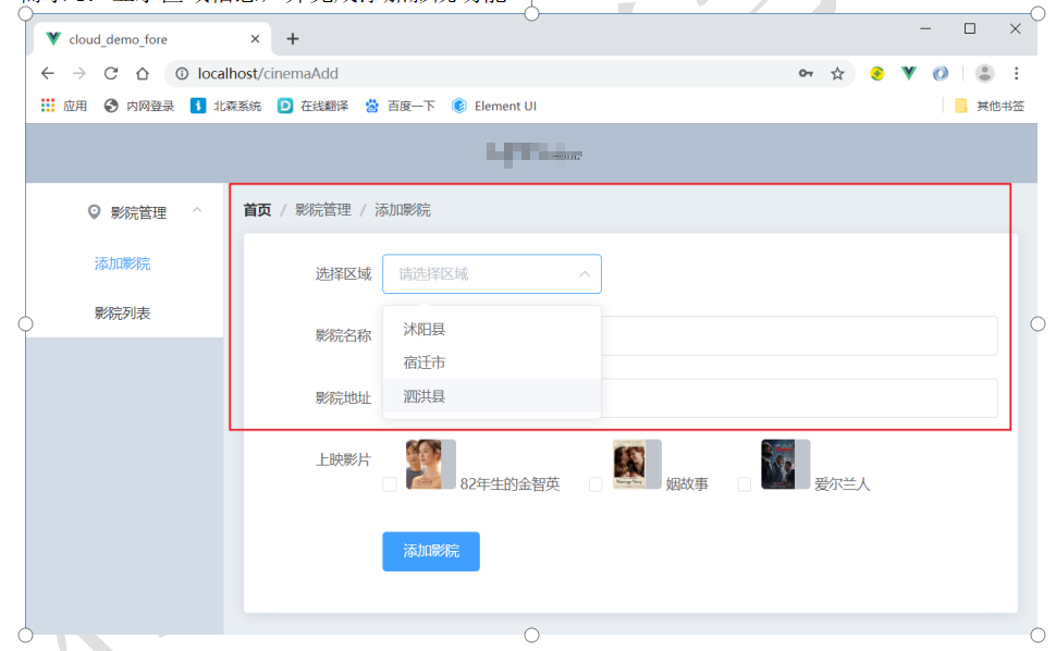 4.功能3:添加影院 环境要求1:影院服务 项目名:exam_cinema_service 服务名:examcinema 端口号:9070 数据库:cloud_db2