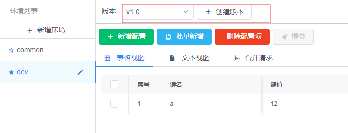 (4)版本:每个环境的配置可以创建多个版本,应用可以获取不同版本的配置,不同版本的配置不同,可以分别维护。