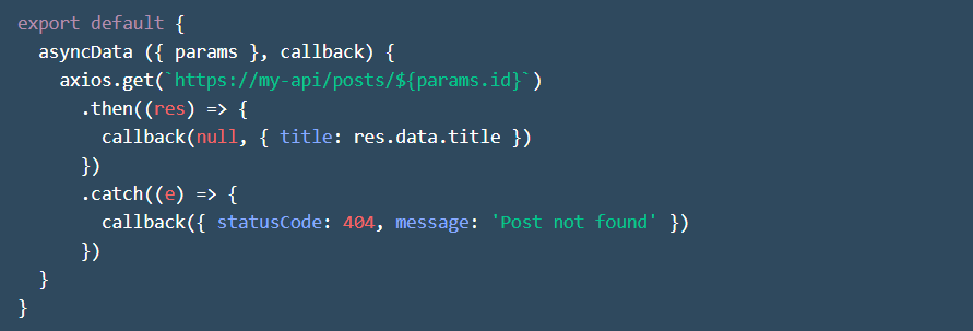 如果你使用 回调函数 的方式, 你可以将错误的信息对象直接传给该回调函数, Nuxt.js 内部会自动调用 error 方法: