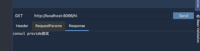 consul服务器运行,启动consul-provider模块,在启动consul-consumer子模块,调用consul-consumer的hi接口