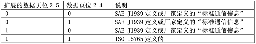 25 位——SAE J1939 保留/扩展数据页,ISO 15765 使用扩展数据页