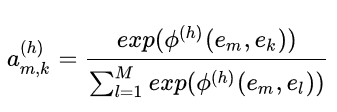 然后利用softmax对计算得到的相似度进行归一化,公式为:
