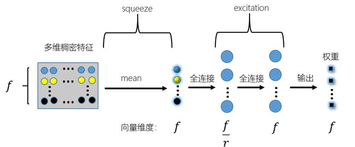 先对得到的多维稠密特征横向求均值,这部分在SE[2]模块中称作squeeze,也就是压缩的意思,然后再用两个全连接层进行全连接操作,这部分在SE模块中称作excitation,也就是激励提取的意思,最终的输出也就是学习得到的多值类别特征中每个值对应的权重。由于是针对多值类别特征的处理,因此这里在编程实现的时候需要按照max length 进行padding之后,再进行one hot编码等后续操作。