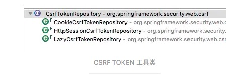 Spring Security自动实现这个功能,但是在使用的时候,需要自己添加一些配置。既然是服务器生成的token,那么必须有token的存储方式和获取方式。Spring Security提供了CsrfTokenRepository接口,并提供了默认的几种实现: