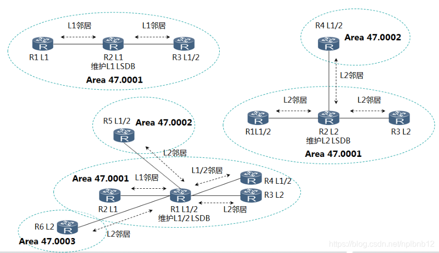 (1)同时属于Level-1和Level-2的路由器成为Level-2路由器,它可以与同一区域的Level-1和Level-1-2形成Level-1邻居关系;也可以与同一或者不同区域的Level-2路由器形成Level-2的邻居关系;还可以与同一或不同区域的Level-1-2路由器形成Level-2的邻居关系;