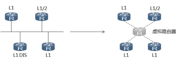 (3)在IS-IS广播网中,同一网段上的同一级别的路由器都会形成邻接关系,包括所有的非DIS路由器之间。