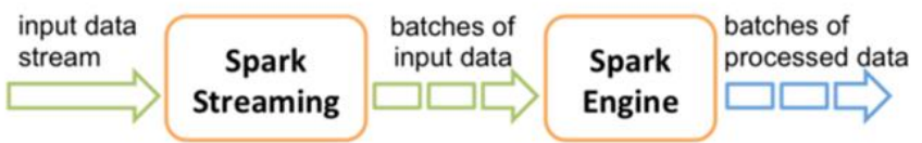 • Spark Streaming将接收到的实时流数据,按照一定时间间隔,对数据进行拆分,交给Spark Engine引擎处理,最终得到一批批的结果