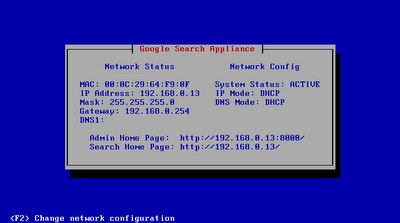 這時也許你可以使用Google Search Appliance Virtual Edition (Google搜尋虛擬機 VGSA)來試試看 … 這裡可以下載Google Search Appliance Virtual Edition (不要輕易下載,因為高達1.09GB)。