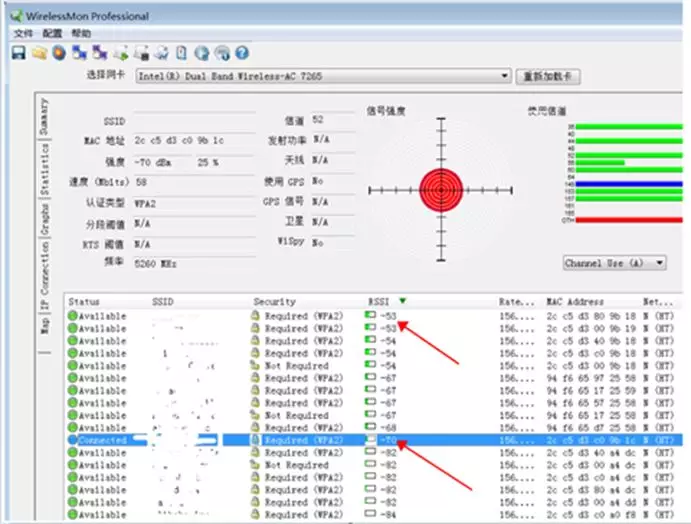 简析:发射功率过高,家中安装多个无线路由器(AP)时,基本都会产生终端粘连不漫游现像。表现为如下图(蓝色为当前连接AP),电脑没有连接到信号最优距离自己最近的无线路由器上。
