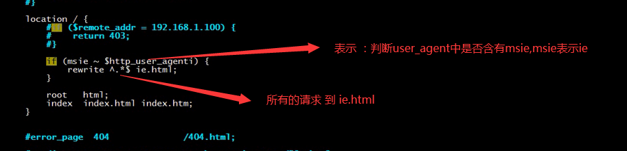 (2)判断 是不是 ie 浏览器,将ie所有的请求重写到 ie.html 上去