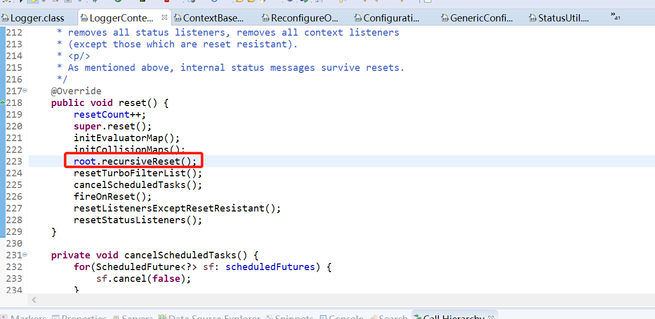 stop in ch.qos.logback.classic.joran.ReconfigureOnChangeTask.performXMLConfiguration