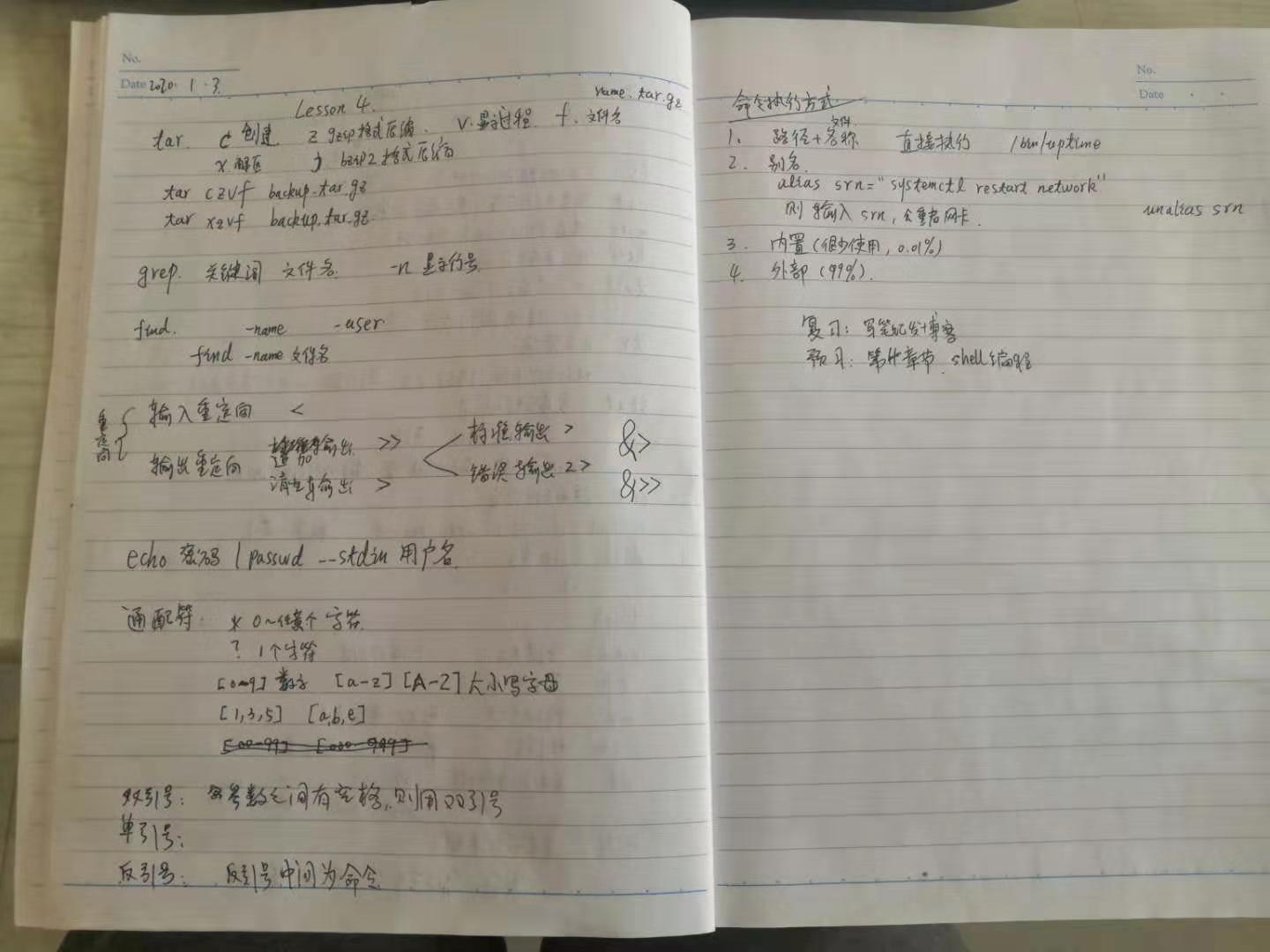 - 输出重定向, 包括追加输出 >>、清空输出> , 又分为标准输出 > 和错误输出 2> , 可以组合在一起 : &> 或者 &>>