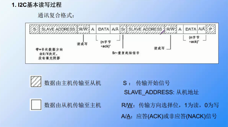 写方向(设备地址)---写入数据(存储器的内部地址或寄存器)即先选择由从机哪个地址开始,再来读和写