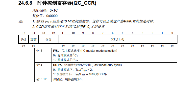 当想设置快速模式时,应该设置DUTY位设置占空比