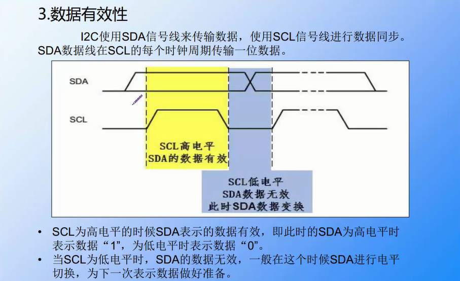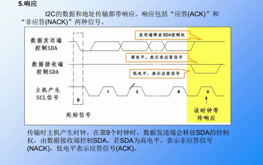 当主机向从机写数据时,主机的数据位会在应答位时主动释放数据线SDA的控制权 ,来接收从机数据线SDA的应答信号