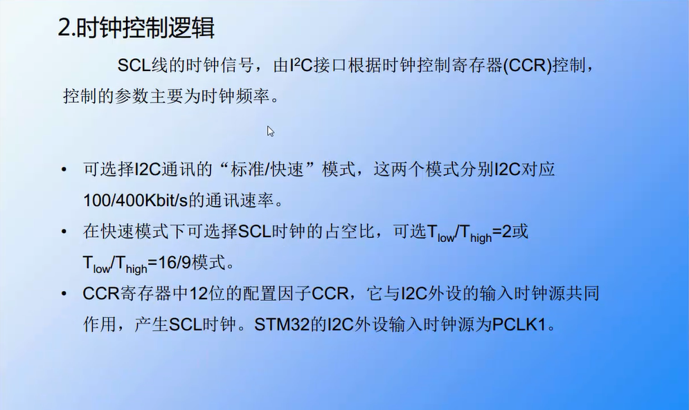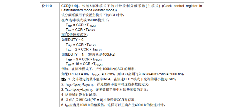 Tlow = CCR ×TPCLK1(低电平时间) TPCLK1为AHB1时钟 同上