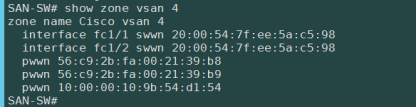 switch(config)# show zone vsan 4 #查看zone
