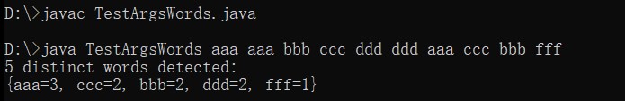 m.put(args[i], freq == null ? ONE : new Integer(freq.intValue() + 1));