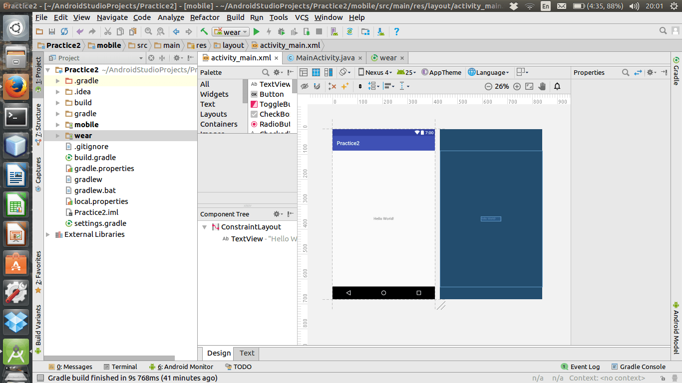 That's why it's showing mobile and wear folders instead of app. So, now just double click on mobile folder you will get app level build.gradle file. Same thing for the wear folder.