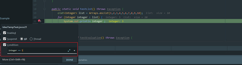 IDEA 可以设置指定条件的断点,增加我们调试的效率。