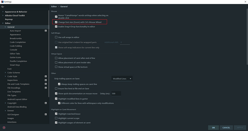 选择之后,就可以通过CTRL+滑动滚轮的方式,调整编辑器窗口的字体大小