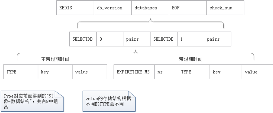 在写入键值时,当该键值有失效时间时,会先写入RDB_OPCODE_EXPIRETIME_MS识别码和失效时间,然后写入键值类型的识别码,最后再写入键和值。