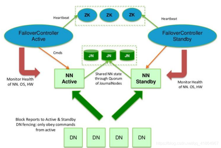 • 快速的故障恢复:心跳保证,Standby NN也需要保存集群中各个文件块的存储位置