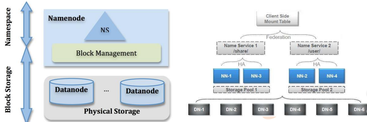 • 集群中提供多个NameNode,每个NameNode负责管理一部分DataNode