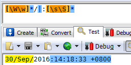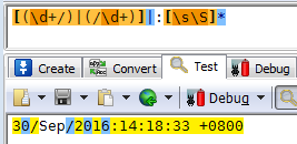 实际上以上正则表达式也就是字符串30/Sep/2016:14:18:33 +0800中的年月日匹配出来
