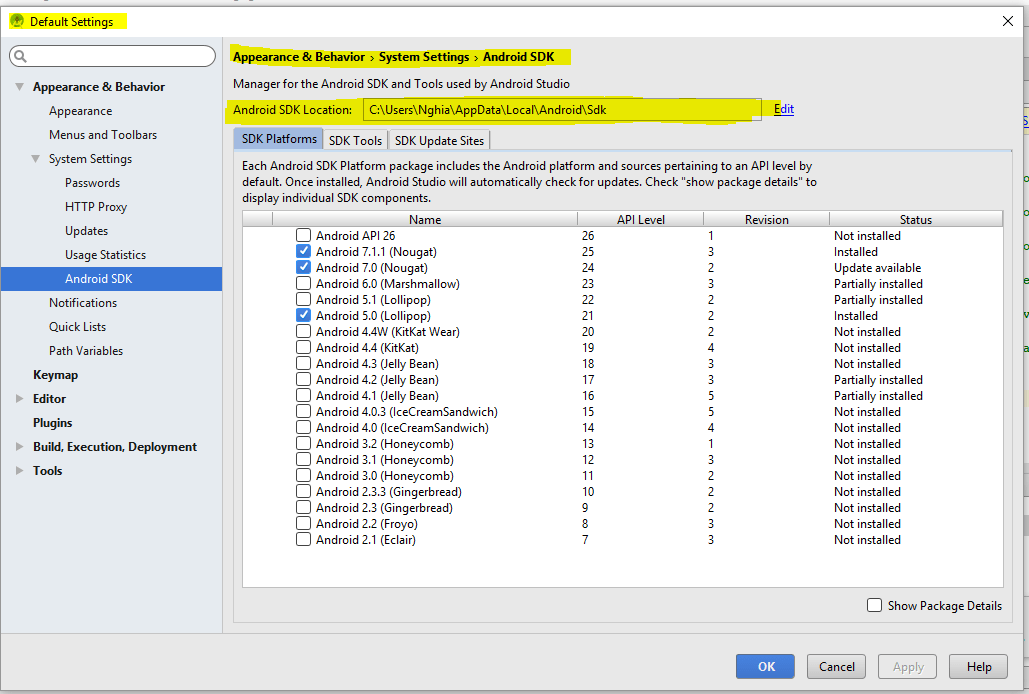 - Copy path to your sdk folder