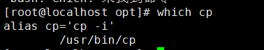发现cp是cp -i的缩写。-i的意思就是说,如果复制目标文件和那个目录下有重名有提示: