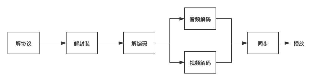 一般情况下,视频流从加载都准备播放是需要经过解协议、解封装、解编码这样的过程,其中协议指的就是流媒体协议;封装是的是视频的封装格式;编码又分为视频编码和音频编码。