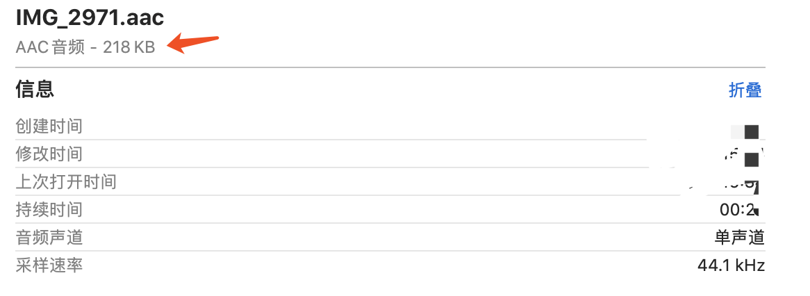 而实际将音频信息提取出来的大小,如下图大概只有 200 多K,这就是音频编码的作用。