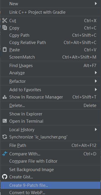这里我们以ic_launcher为例,右键选择Create 9-Patch file…