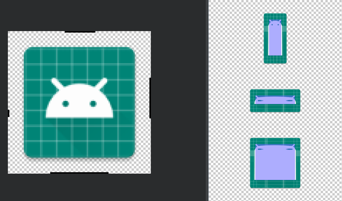 图片的下边和右边确定了内容填充的区域。那什么是内容填充?我们先把下边和右边先画上如图(这里我勾选了Show content。在浏览图里就展示了内容填充区域),我这里设置的填充区域,刚好是这个小机器人的白色区域。这里大家可以看下边和右边的相交区域,即是填充区域: