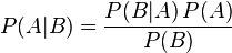 - P(A|B)是已知 B 发生后 A 的条件概率,也由于得自 B 的取值而被称作 A 的后验概率。