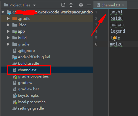 在工程根目录下新建channel.txt文件,如图