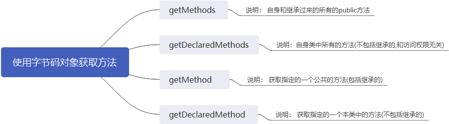 字节码对象获取方法进而调用方法,通过代码1~代码5,演示了非static/static、返回值void/返回值非static、固定参数/可变参数列表的情况,通过上面的代码,字节码对象对方法的调用基本上实现所有类对象对方法的调用。