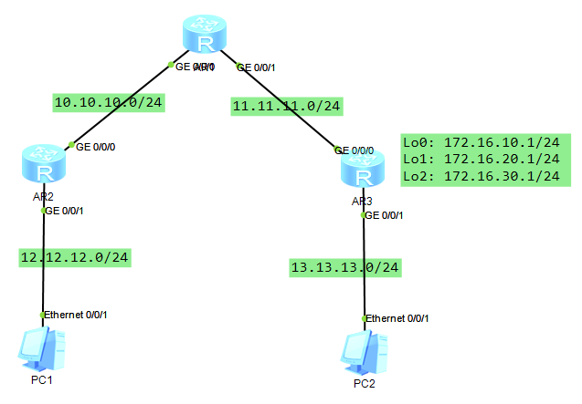 [R3-GigabitEthernet0/0/0]ip address 11.11.11.2 255.255.255.0