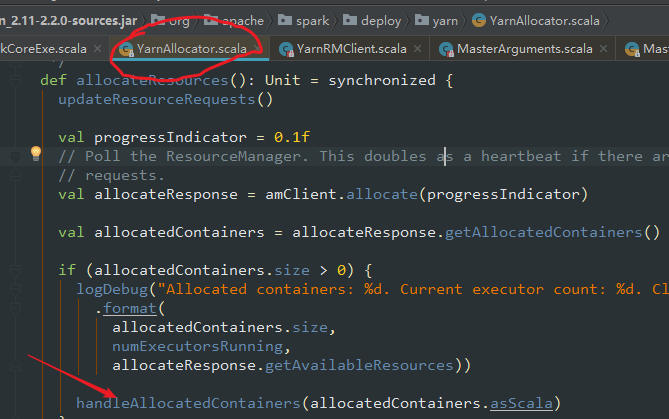 def handleAllocatedContainers(allocatedContainers: Seq[Container]): Unit = {