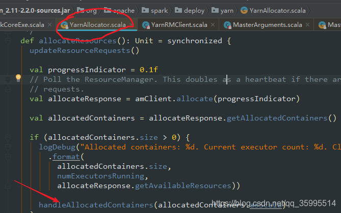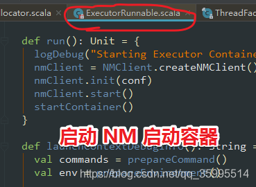 进入 ExecutorRunnable 此处可以看到 ApplicationMaster 和 NodeManager 做交互了