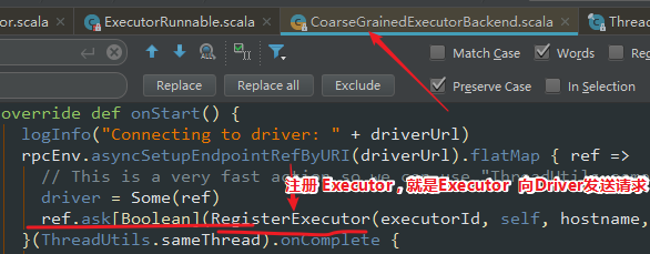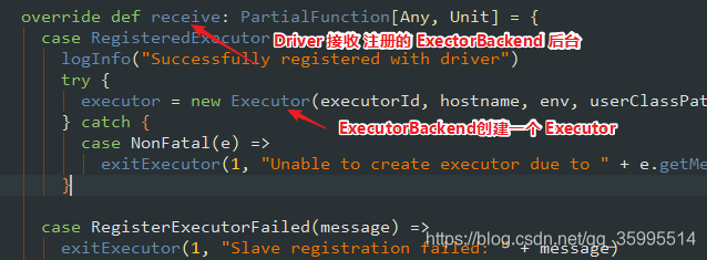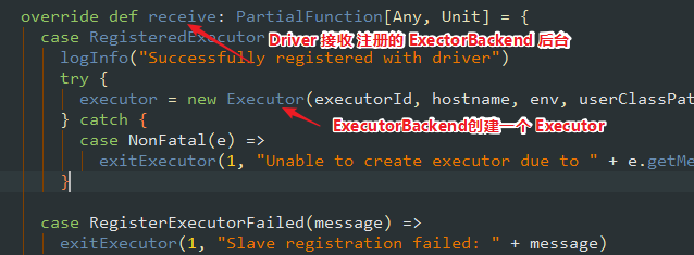 为什么 要注册 到 Driver ,因为 我不知道 你 准备 好了 啊, 你向我注册 ,告诉我 你后台已经启动 ExecutorBackend 反向注册到 Driver , 之后 Driver 会给 ExecutorBackend 一个 响应,ExecutorBackend 接收 响应 , 创建 Executor计算对象