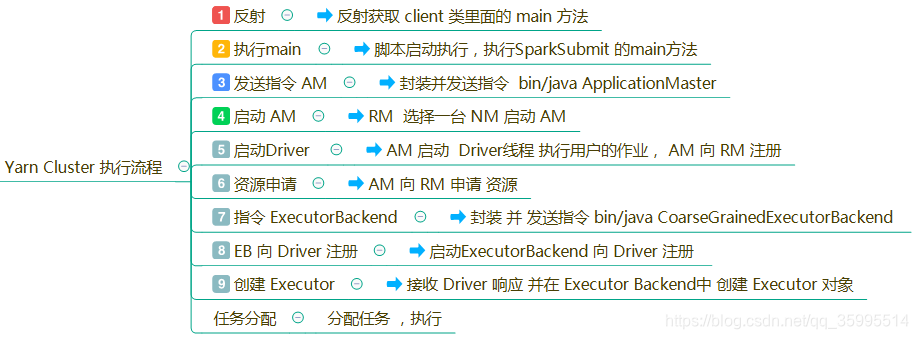 YARN-Cluster模式下,Driver运行在AM(Application Master)中,它负责向YARN申请资源,并监督作业的运行状况。当用户提交了作业之后,就可以关掉Client,作业会继续在YARN上运行,因而YARN-Cluster模式不适合运行交互类型的作业;