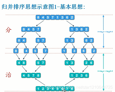 归并排序有一个很重要的思想在里边,那就是分治的思想。