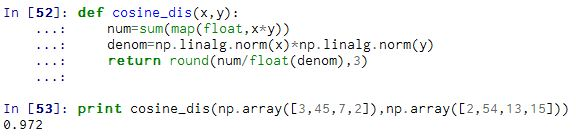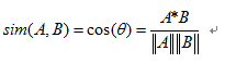 余弦相似度通过计算两个向量间的夹角余弦值衡量两个用户的相似度,余弦相似度更加注重方向上的相似性而非距离上的。