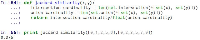Jaccard相关系数主要用于计算两个集合的并集和交集的比值来度量用户相似度。