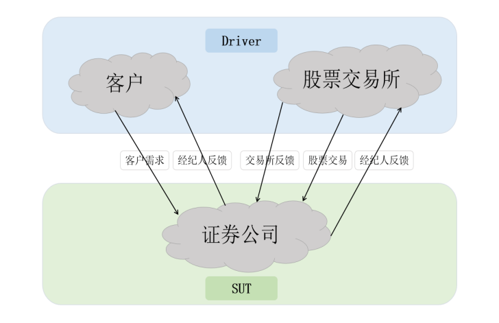 从表面上看,整个架构以证券公司为核心,证券公司的操作始终代表客户的意愿,所以本质上,测试还是围绕客户买卖股票行为展开,客户提出股票交易请求,证券公司收到请求后代表客户将请求发送到股票交易所,并将收到的交易结果反馈给客户。为了保持测试前干净的环境和测试时数据的更新,基准还提供了2种与业务场景无关的事务,即交易清理事务、数据维护事务。