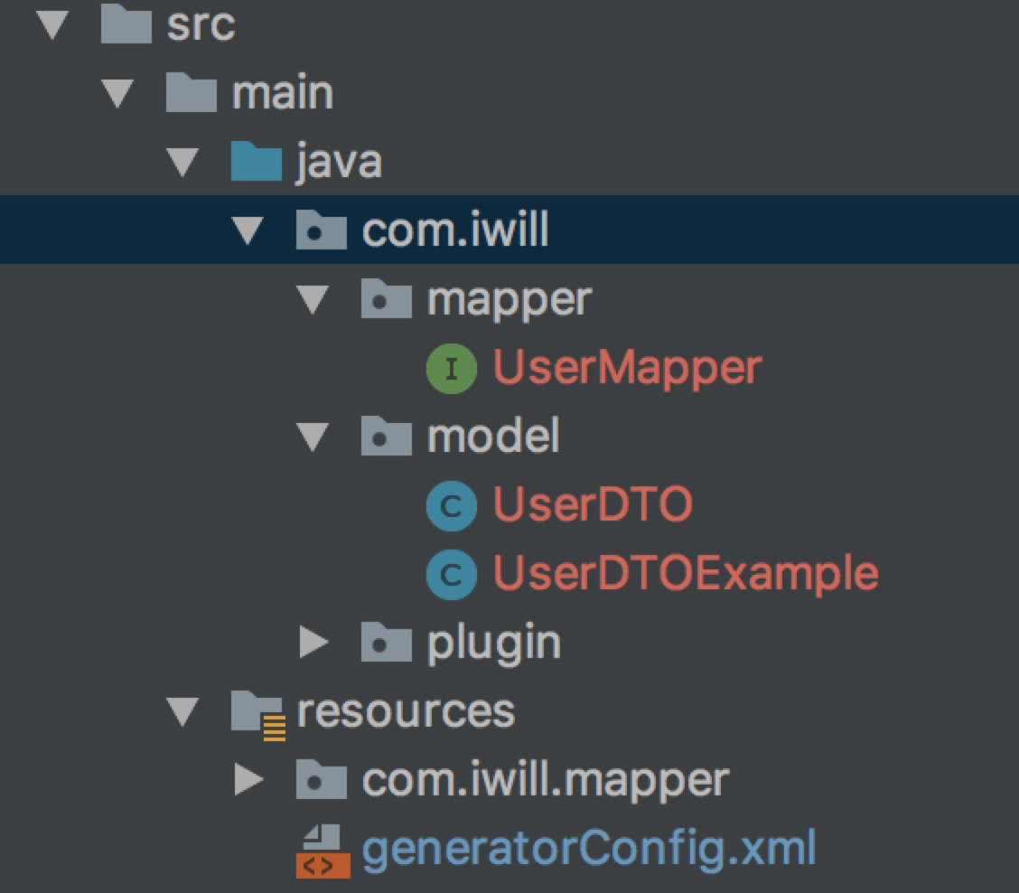dto和example生成在一个目录的原因是它们的生成目录都使用了