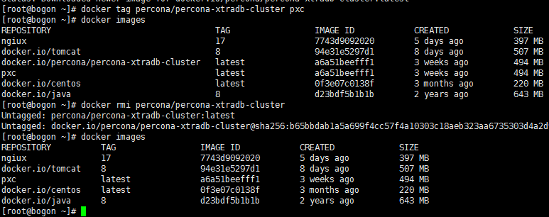 docker run -d -p 3306:3306 -e MYSQL_ROOT_PASSWORD=abc123456 -e CLUSTER_NAME=PXC -e XTRABACKUP_PASSWORD=abc123456 -v v1:/var/lib/mysql -v backup:/data --privileged=true -- name=node1 --net=sharednet pxc
